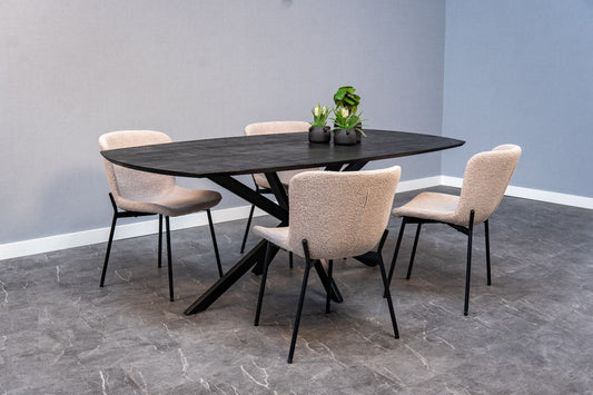 Eetkamerstoel Aalborg Beige Bouclé met zwart onderstel