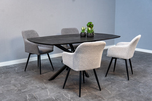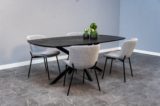 Eetkamerstoel Skagen Donkergrijs Bouclé met zwart onderstel