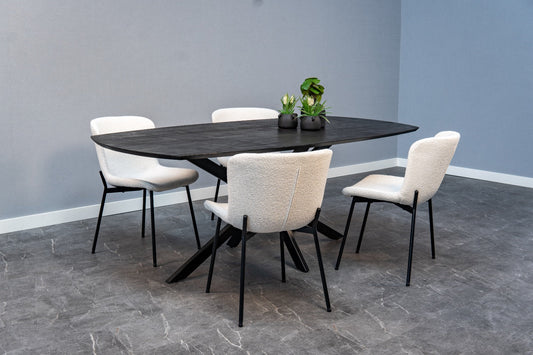 Eetkamerstoel Skagen Wit Bouclé met zwart onderstel