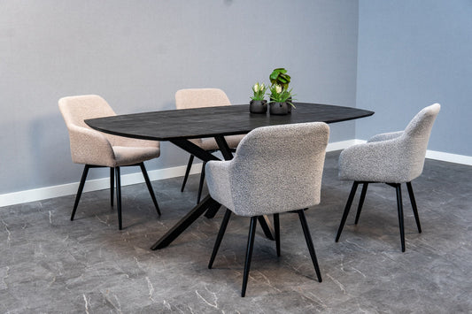 Eetkamerstoel Horsens Zand Bouclé met zwart onderstel