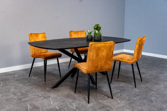 Eetkamerstoel Svendborg Donkerblauw Fluweel met zwart onderstel