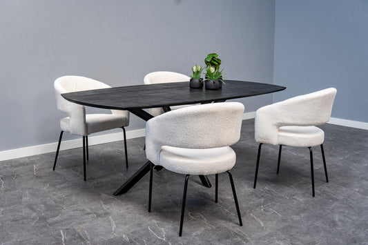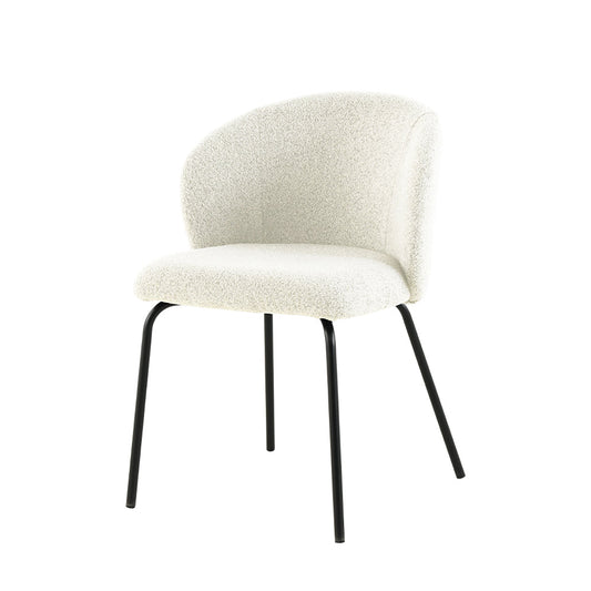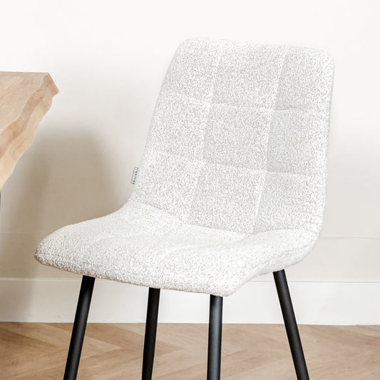 Eetkamerstoel Aalborg Wit Bouclé met zwart onderstel