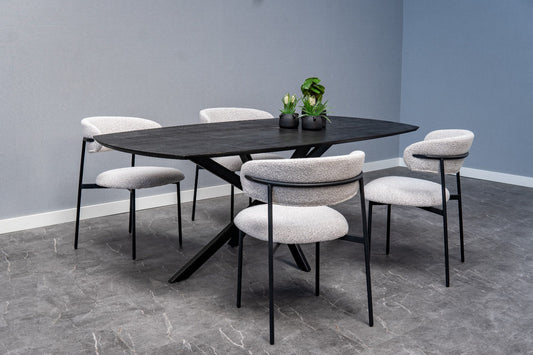 Eetkamerstoel Tromsø Donkergrijs Bouclé met zwart onderstel