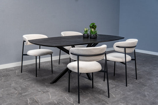 Eetkamerstoel Jutland Beige Bouclé met zwart onderstel