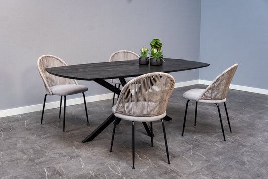 Eetkamerstoel Uppsala Beige Rib met zwart onderstel