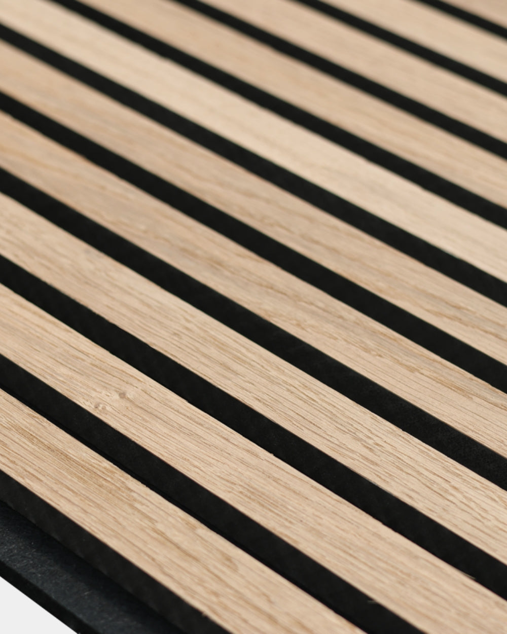 • Materialen: Deze panelen zijn zorgvuldig vervaardigd met meerdere lagen om een optimale balans tussen akoestische functionaliteit en esthetiek te bieden. Ze bestaan uit een kern van akoestisch vilt dat geluid dempt en echo vermindert. Daar bovenop zijn MDF latjes bevestigd voor extra stevigheid en structuur. De latjes zijn bedekt met een laagje echt eikenhout fineer, waardoor de panelen een natuurlijke en warme uitstraling krijgen.