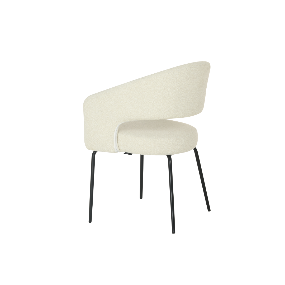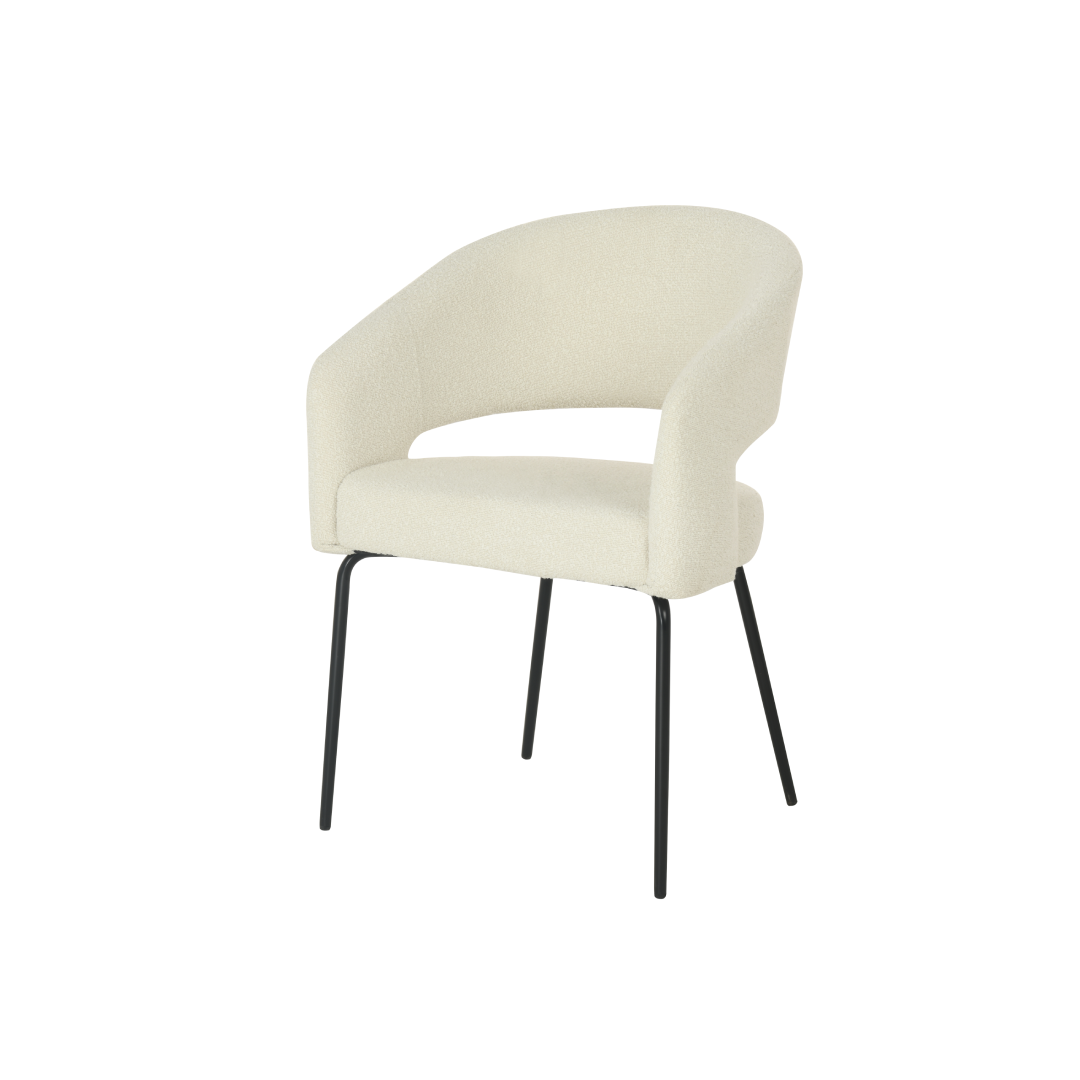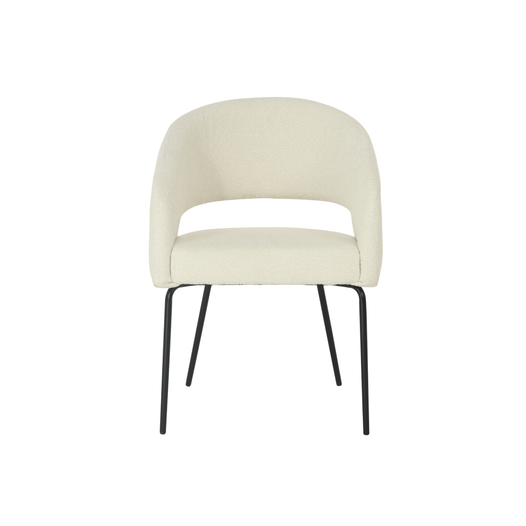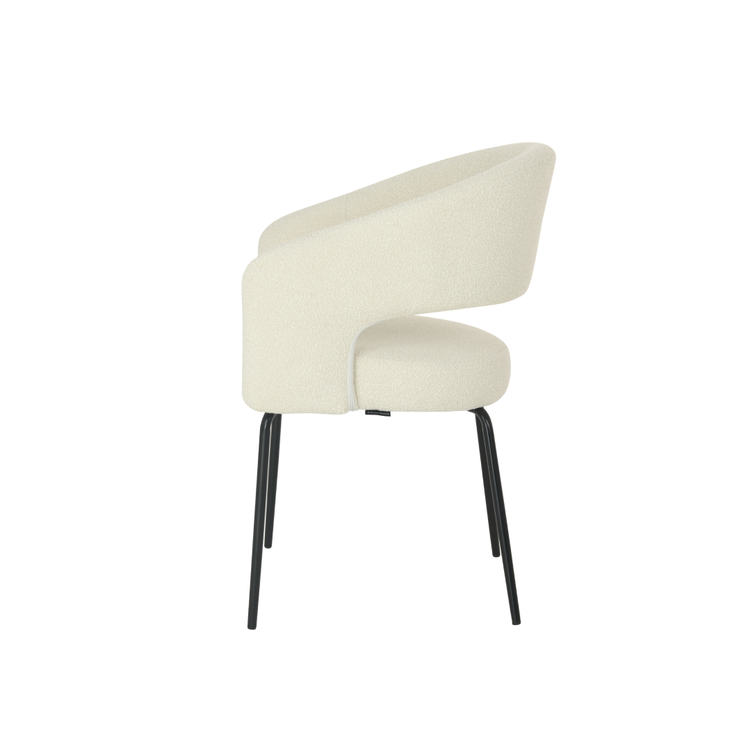 Eetkamerstoel Aalborg Wit Bouclé met zwart onderstel