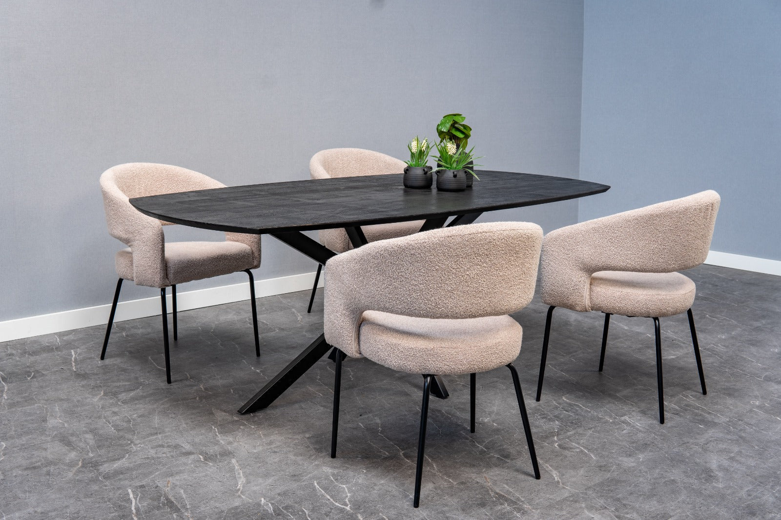 Eetkamerstoel Aalborg Zand Bouclé met zwart onderstel