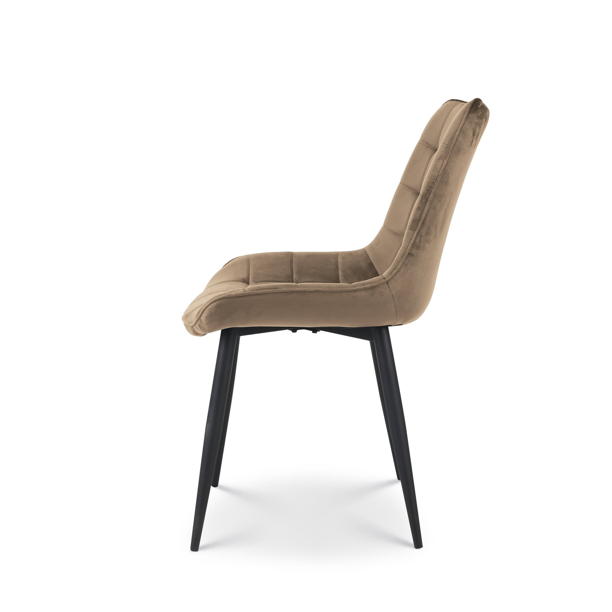 Met zijn elegante design, zachte velvet stof en stevige metalen poten, is de eetkamerstoel Amber de perfecte keuze voor wie op zoek is naar een comfortabele, duurzame en stijlvolle stoel voor in de eetkamer.