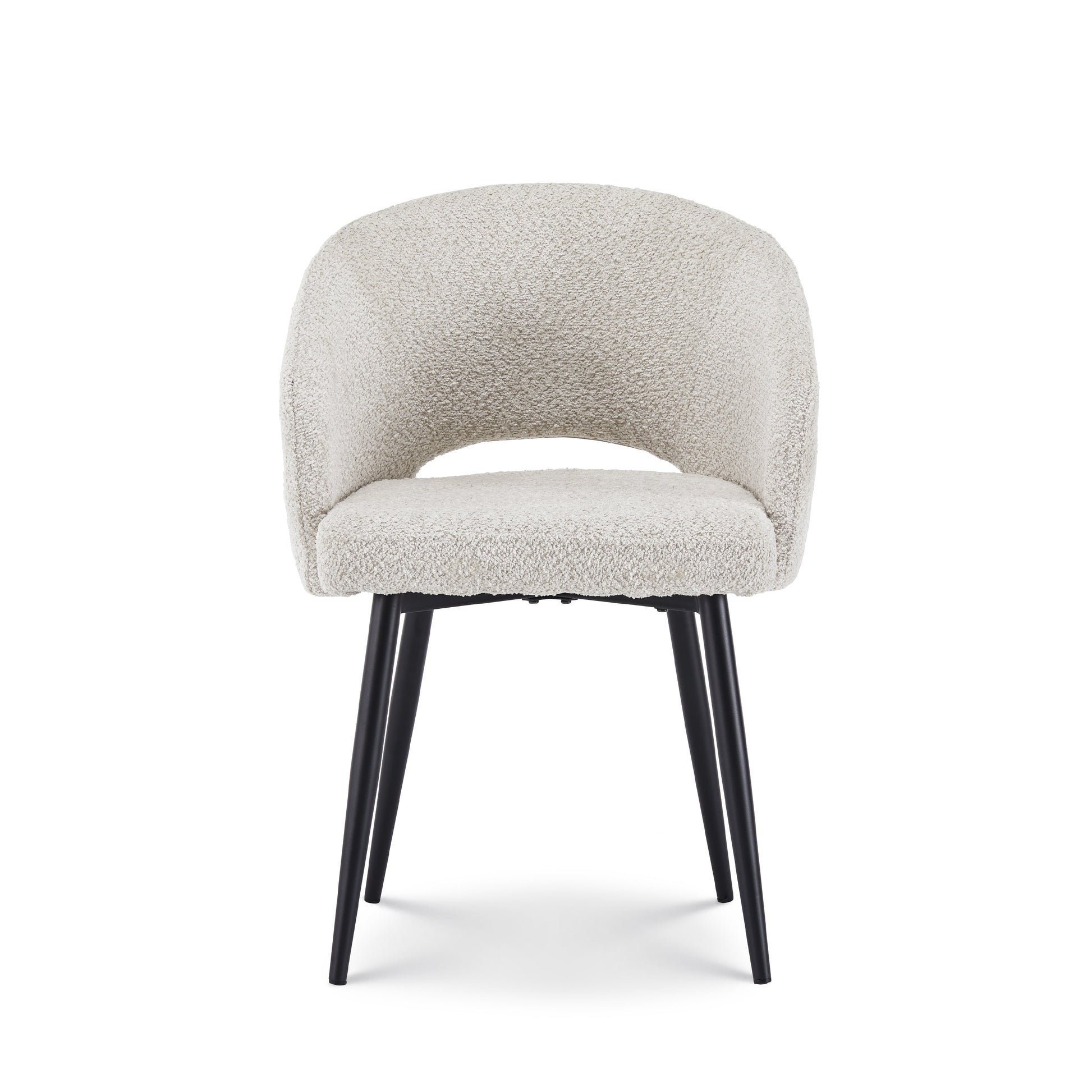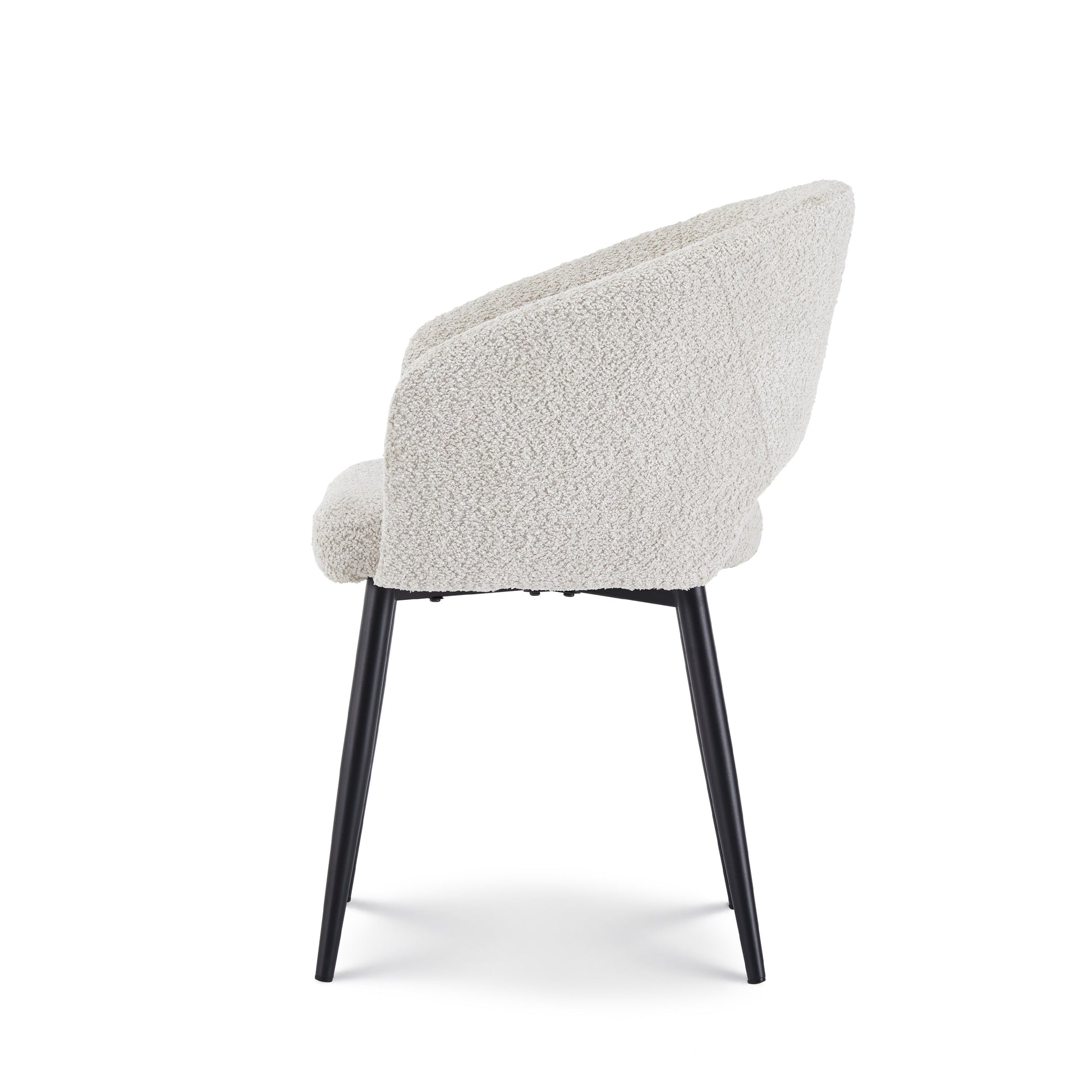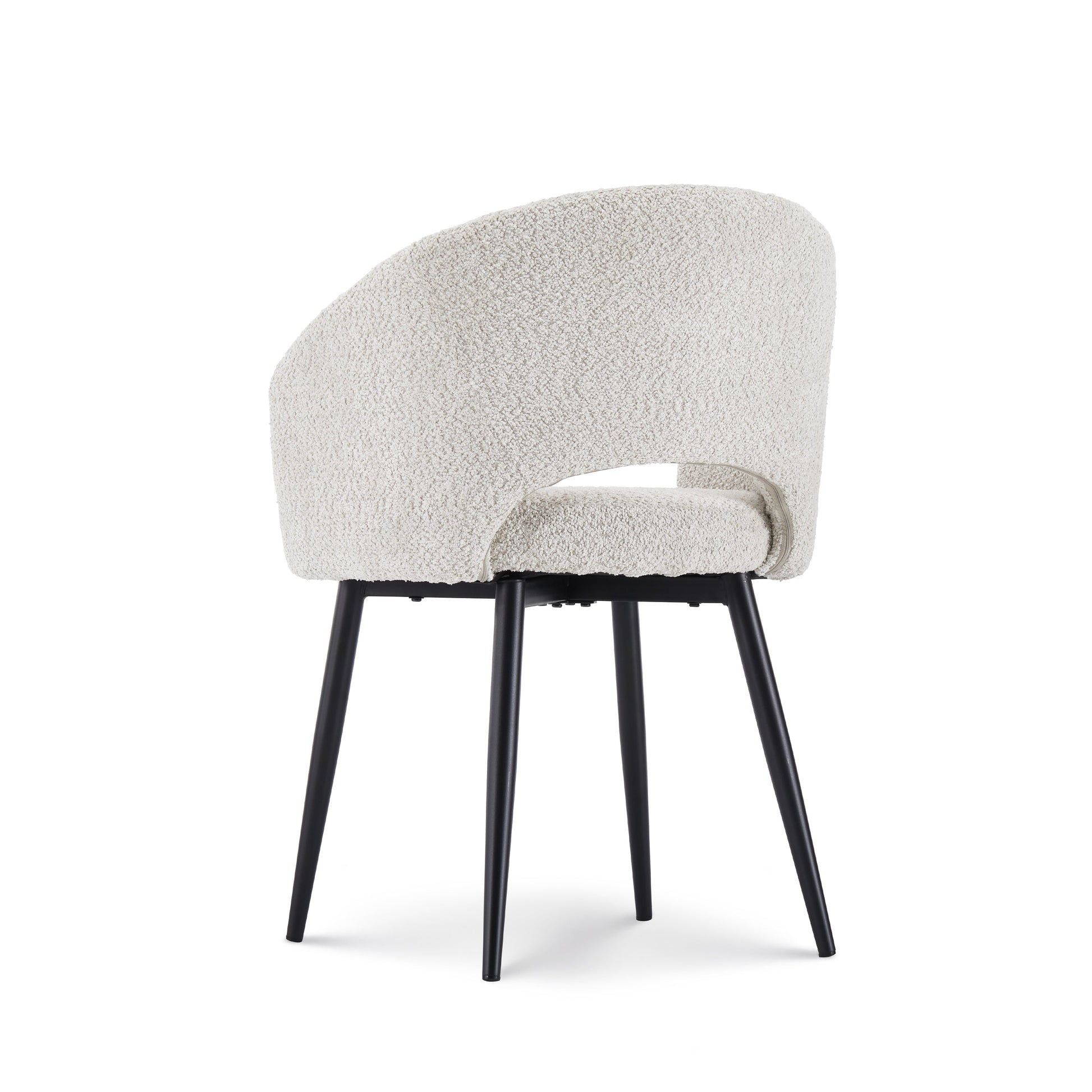 Stalen Poten: De stevige poten van de Anna stoel zijn gemaakt van duurzaam staal, afgewerkt in een strakke zwarte kleur die perfect aansluit bij de bouclé bekleding. De metalen poten bieden niet alleen uitstekende stabiliteit en duurzaamheid, maar geven de stoel ook een modern industrieel accent dat goed samengaat met zowel moderne als klassieke interieurstijlen.