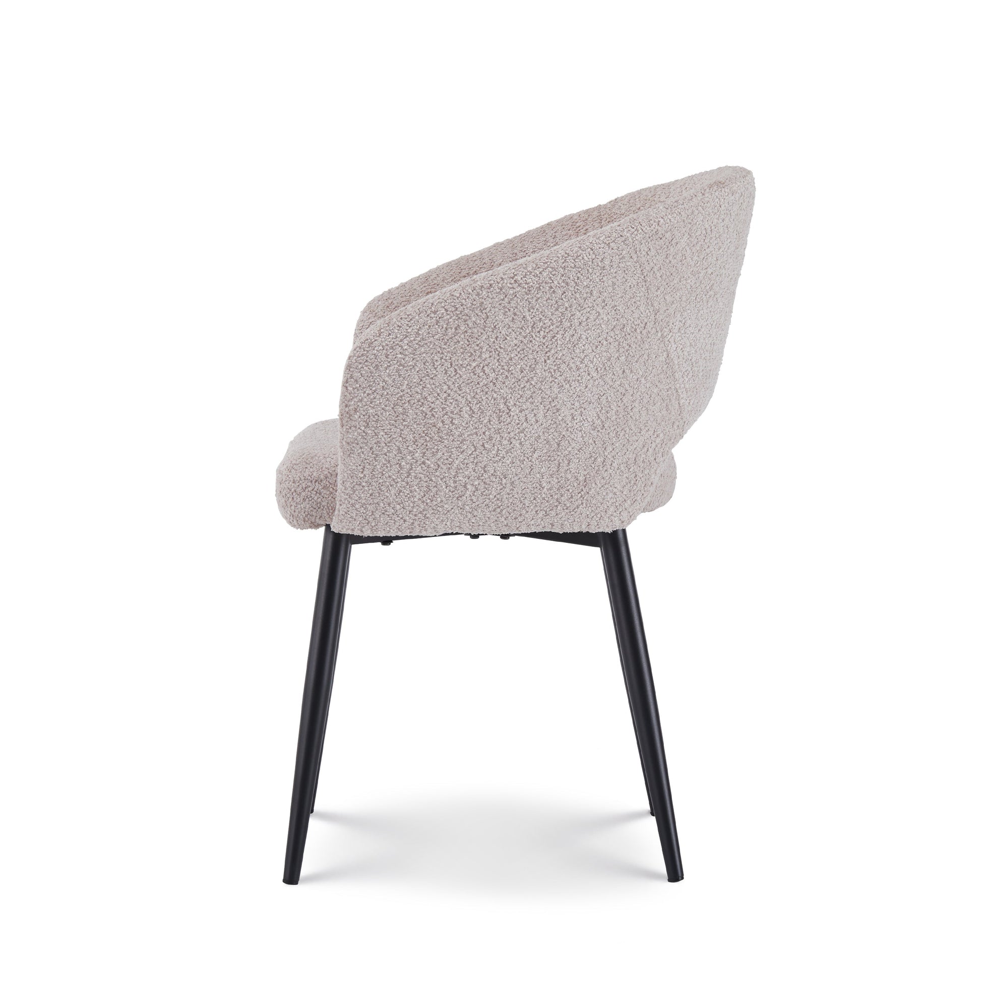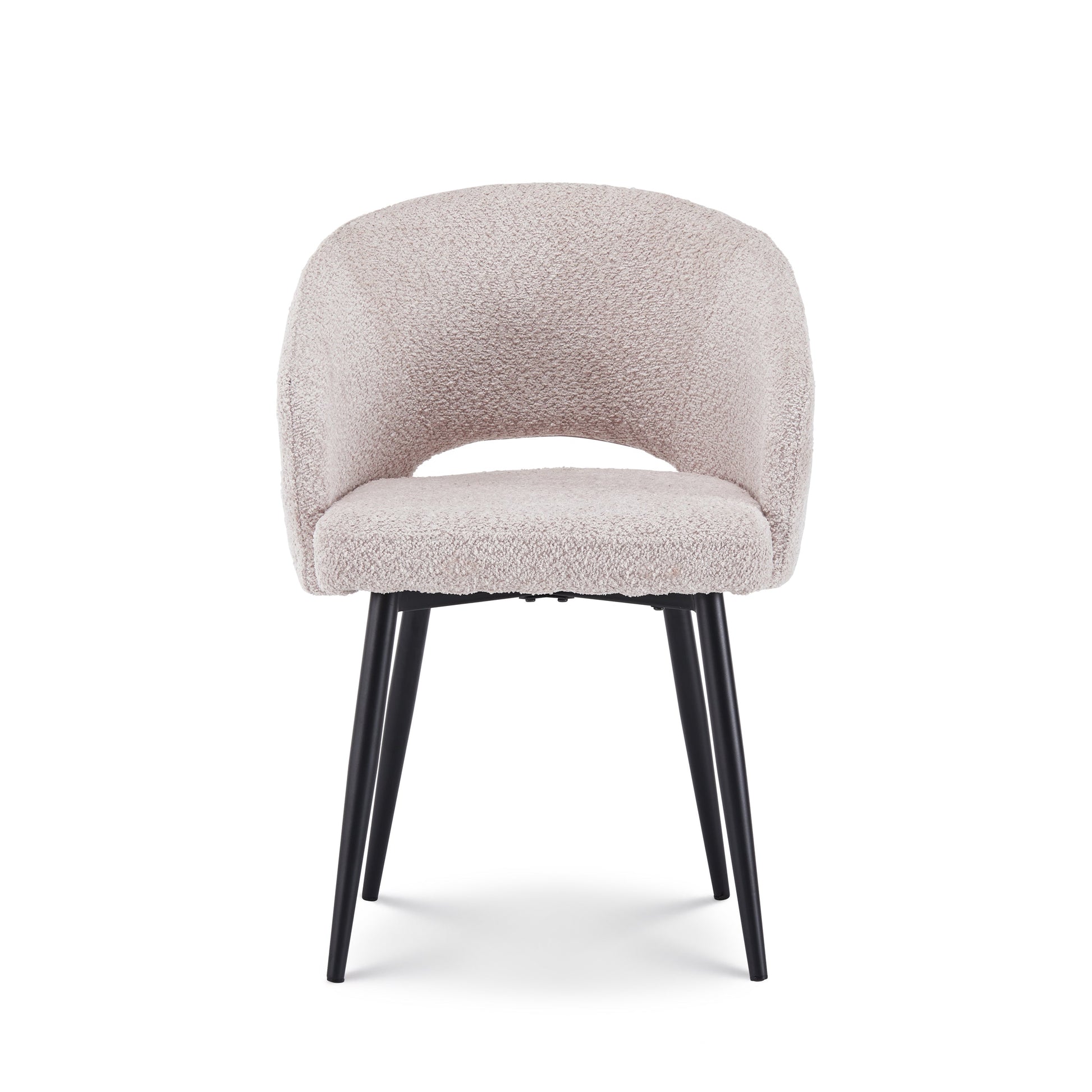 Luxe Bouclé Bekleding: De Anna stoel is bekleed met hoogwaardige bouclé stof, bekend om zijn zachte, geweven textuur die een vleugje luxe toevoegt aan elk interieur. Verkrijgbaar in vier prachtige kleuren – taupe, roze, grijs, en gebroken wit – biedt deze stoel de flexibiliteit om naadloos in verschillende kleurenschema's en stijlen te passen. Of u nu kiest voor de warme tint van taupe, de subtiele elegantie van grijs, de zachte charme van roze, of het frisse gevoel van gebroken wit, de Anna stoel is ontworpen om elke ruimte te verrijken.