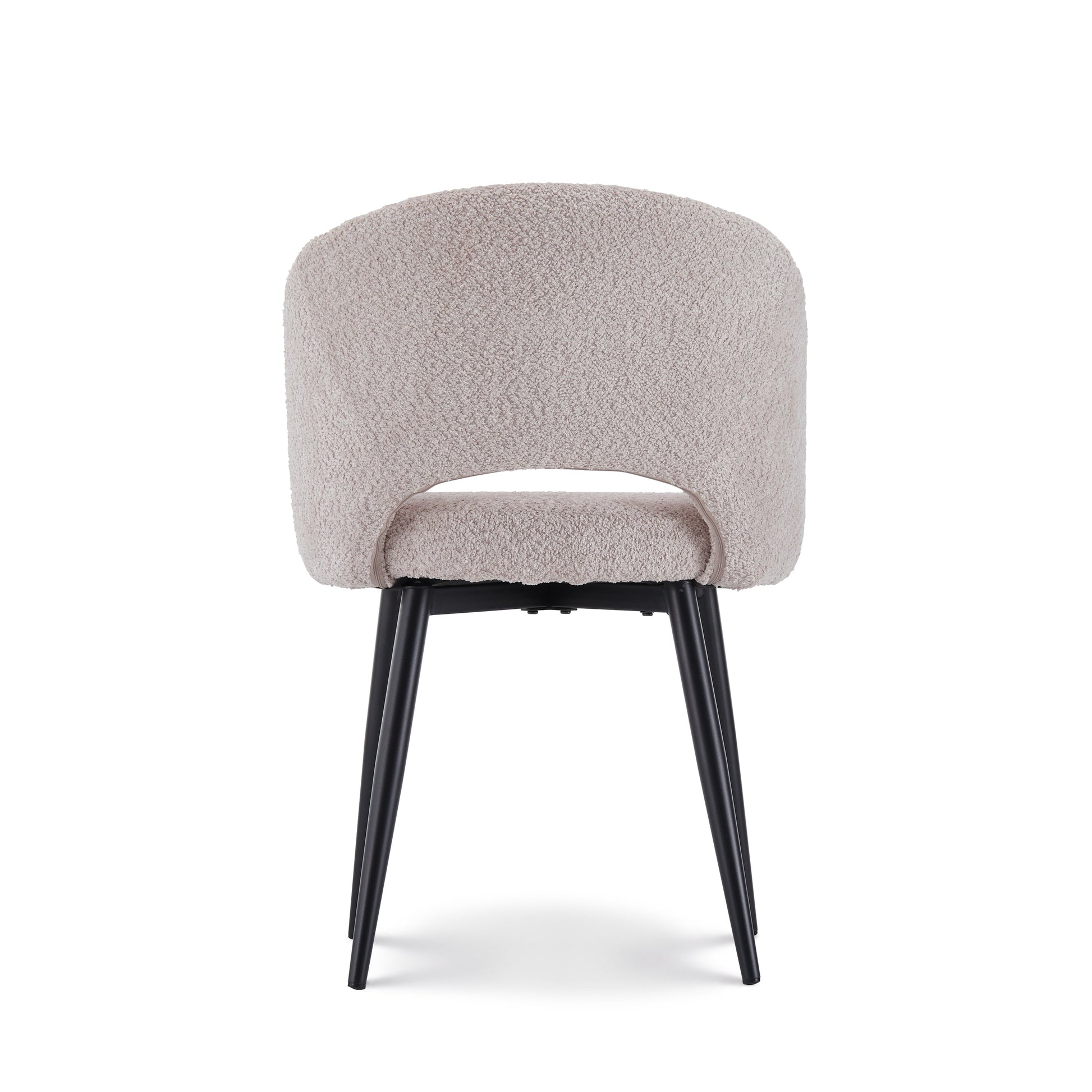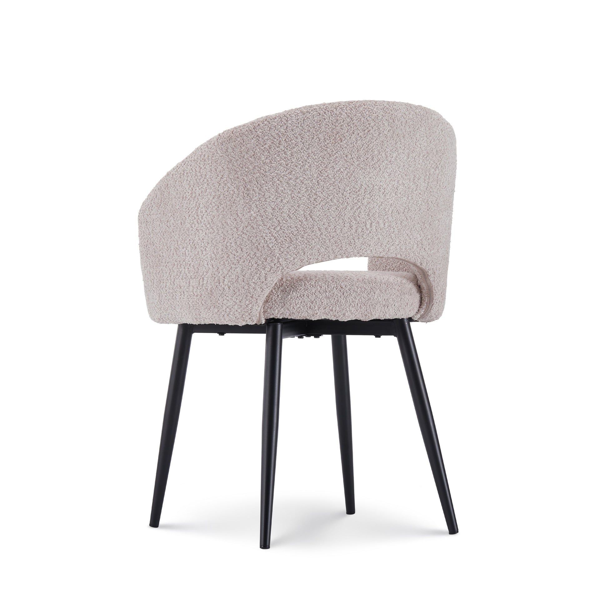 Stalen Poten: De stevige poten van de Anna stoel zijn gemaakt van duurzaam staal, afgewerkt in een strakke zwarte kleur die perfect aansluit bij de bouclé bekleding. De metalen poten bieden niet alleen uitstekende stabiliteit en duurzaamheid, maar geven de stoel ook een modern industrieel accent dat goed samengaat met zowel moderne als klassieke interieurstijlen.
