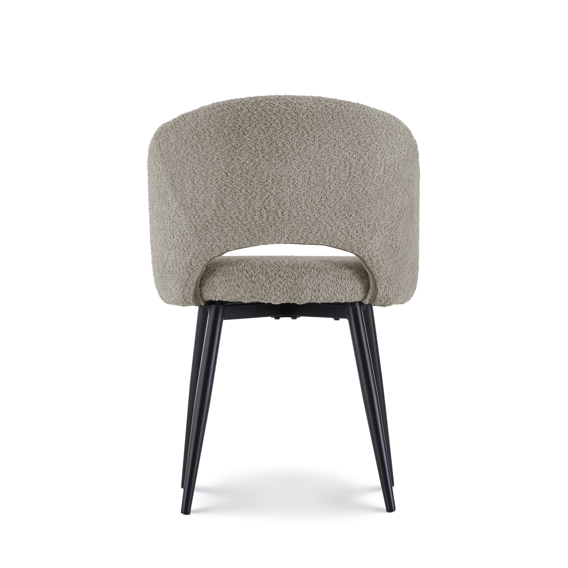 Stalen Poten: De stevige poten van de Anna stoel zijn gemaakt van duurzaam staal, afgewerkt in een strakke zwarte kleur die perfect aansluit bij de bouclé bekleding. De metalen poten bieden niet alleen uitstekende stabiliteit en duurzaamheid, maar geven de stoel ook een modern industrieel accent dat goed samengaat met zowel moderne als klassieke interieurstijlen.