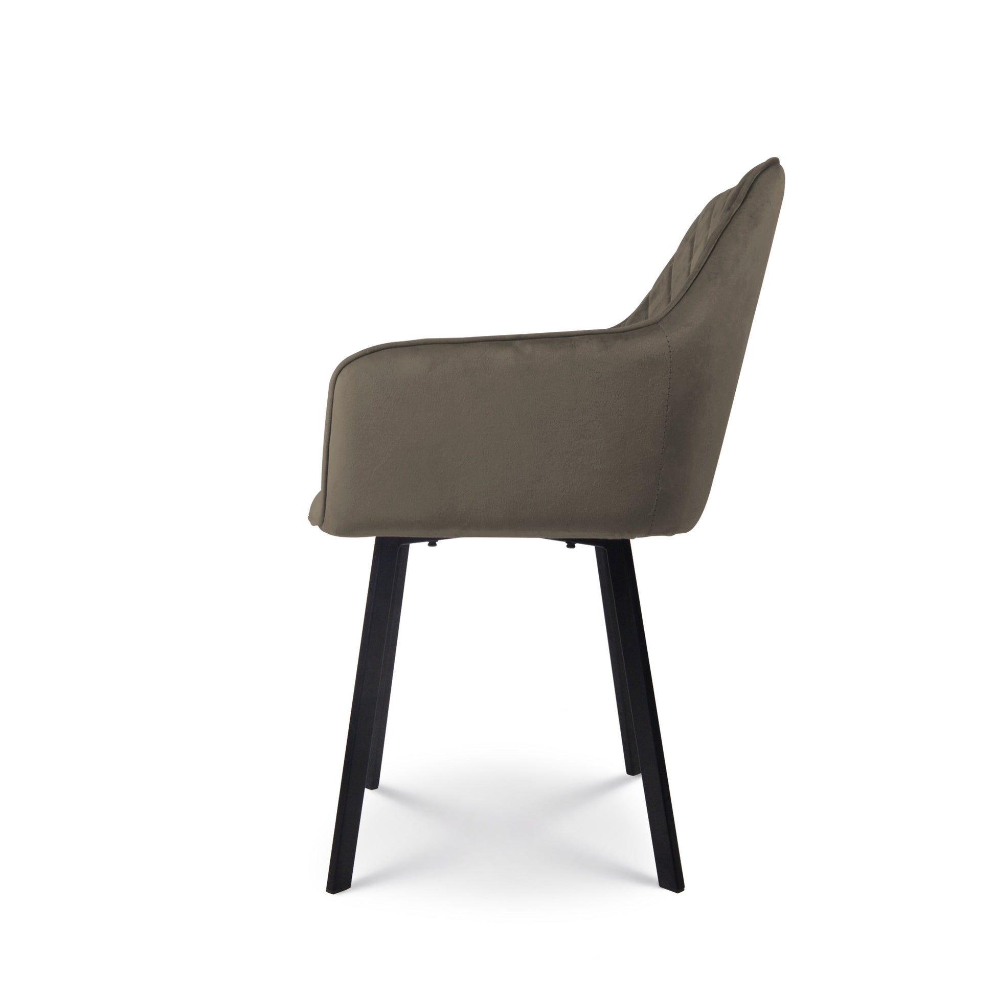 De poten van de eetkamerstoel Bella zijn gemaakt van duurzaam metaal dat gepoedercoat is voor extra bescherming en een matte afwerking heeft. Dit geeft de stoel niet alleen een moderne uitstraling, maar zorgt ook voor stabiliteit en stevigheid tijdens het zitten.