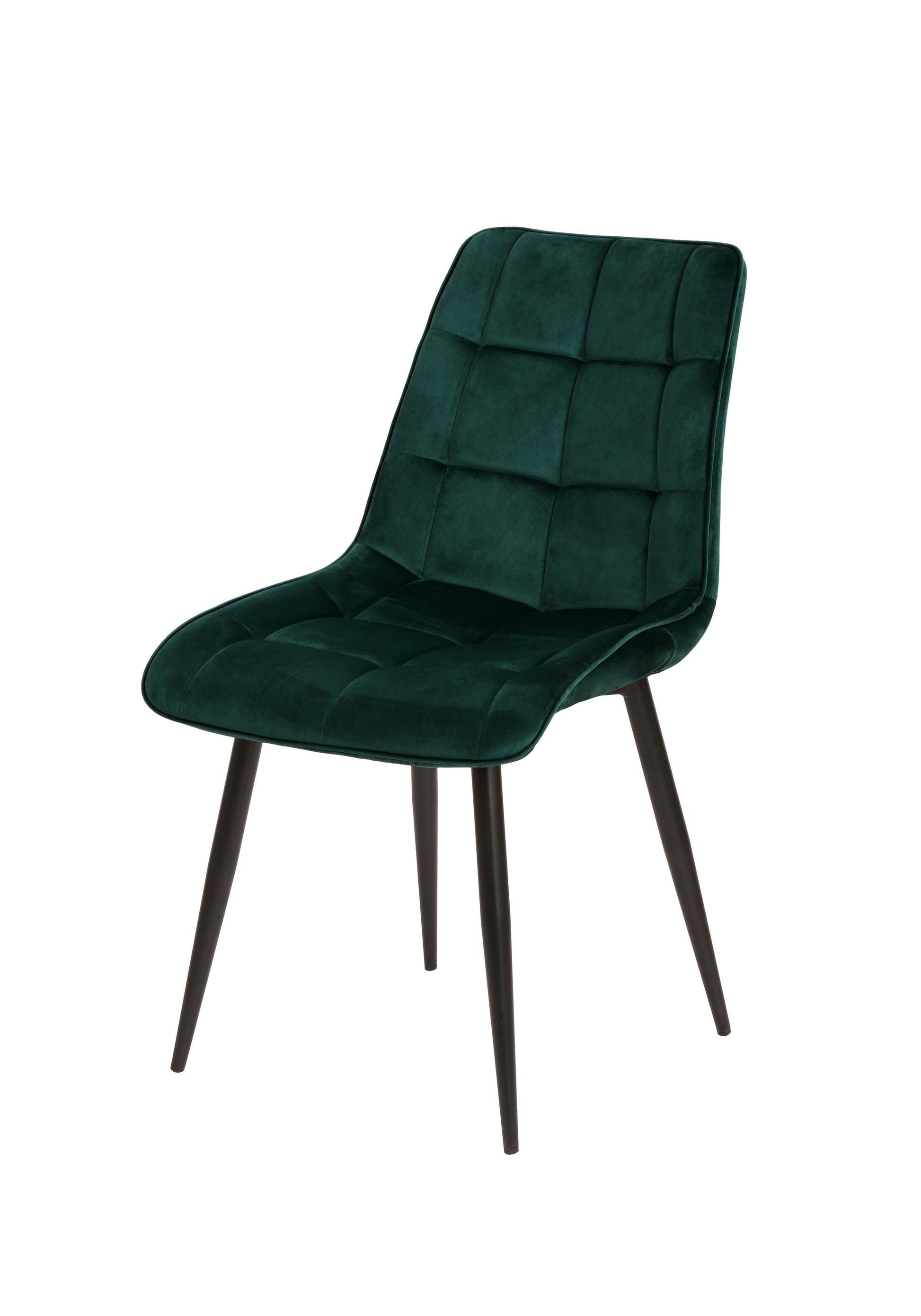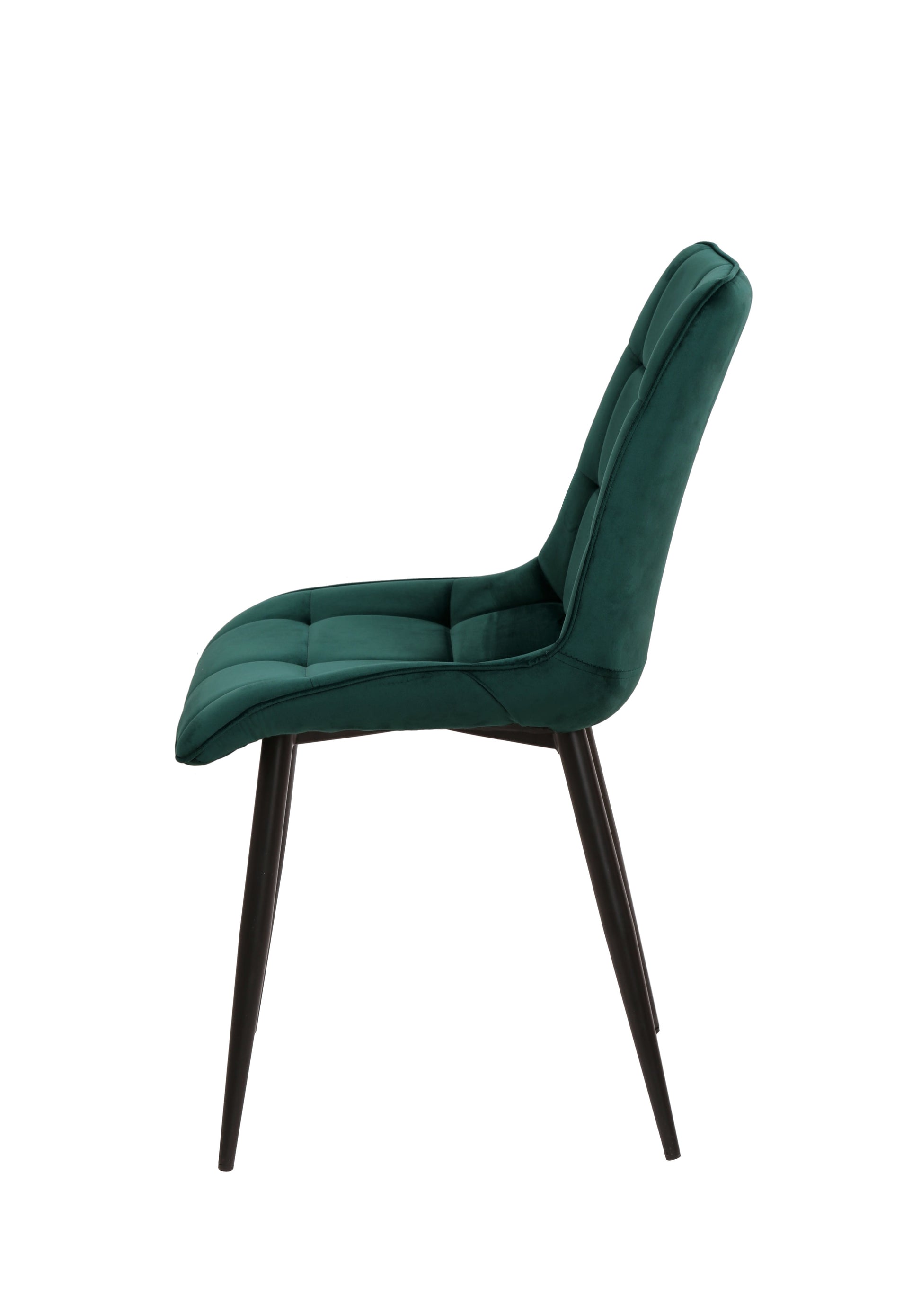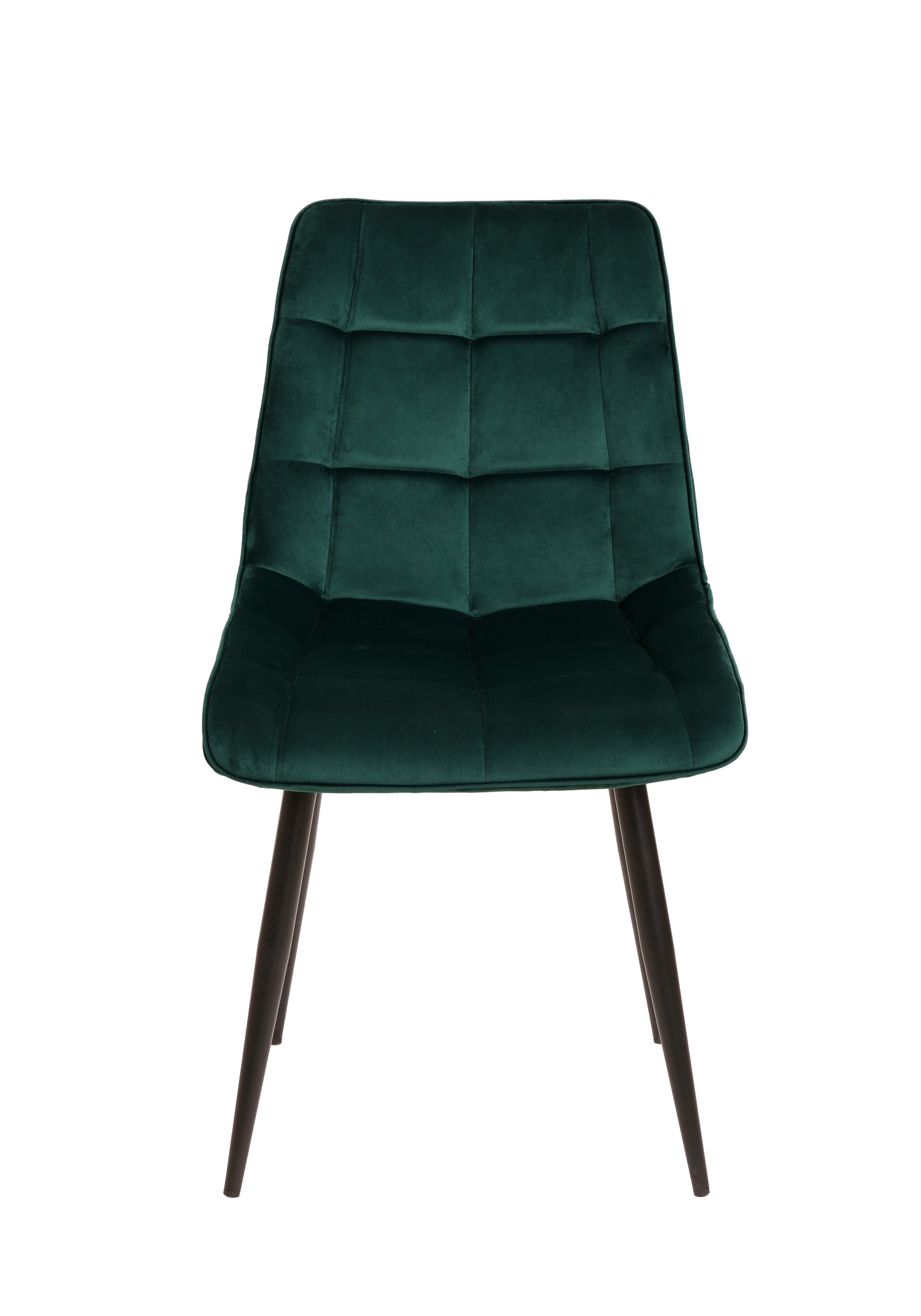 Zachte fluwelen stoel zijn helemaal van nu, zo ook de Stoel Bergen! Het donkergroen in combinatie met de geblokte stiksels geeft een stijlvolle glans aan de eetkamer, zodat de elegante, tijdloze stoelen altijd de toon zullen zetten.