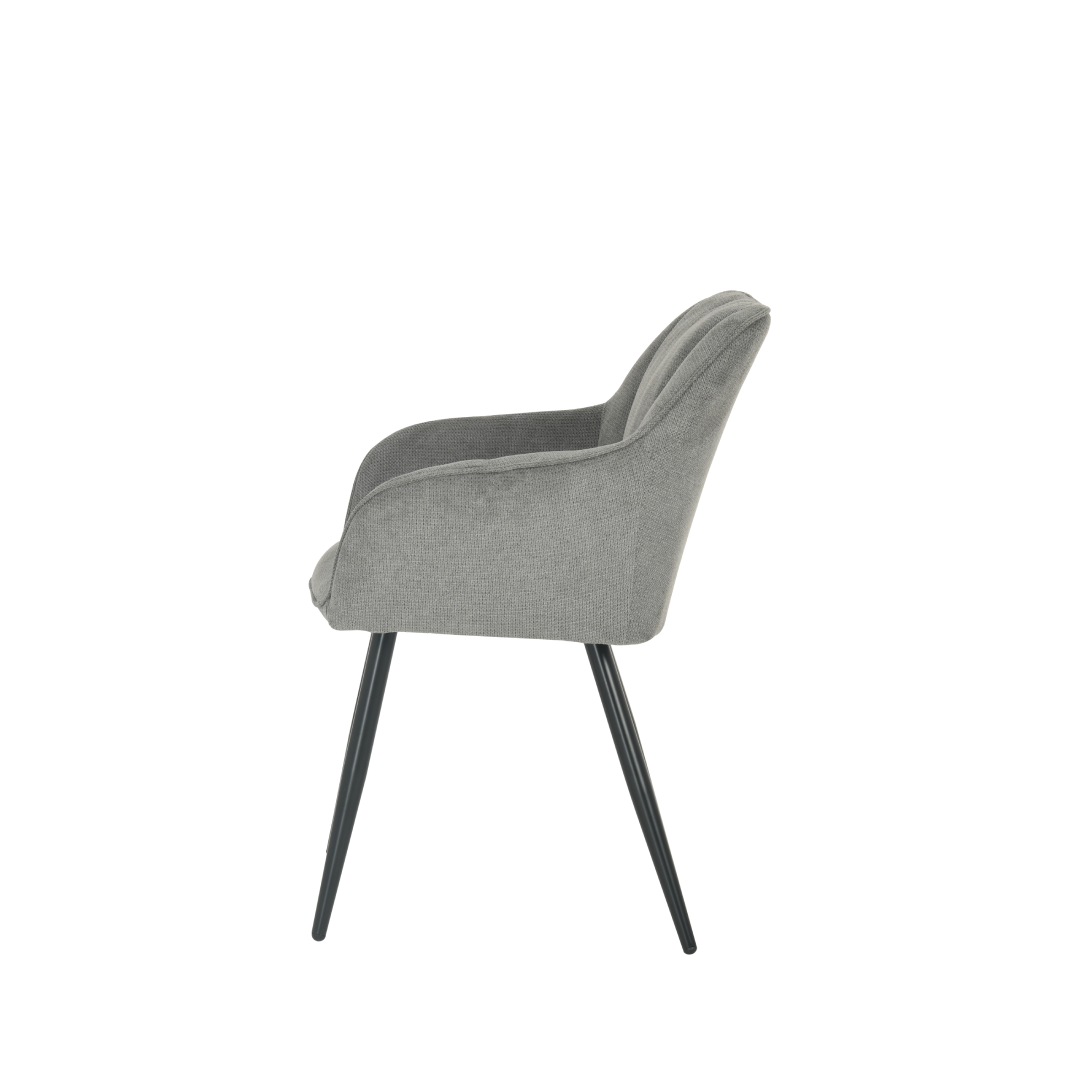 De Eetkamerstoel Bornholm in donkergrijs linnen stof is een stijlvolle aanvulling voor elk interieur.