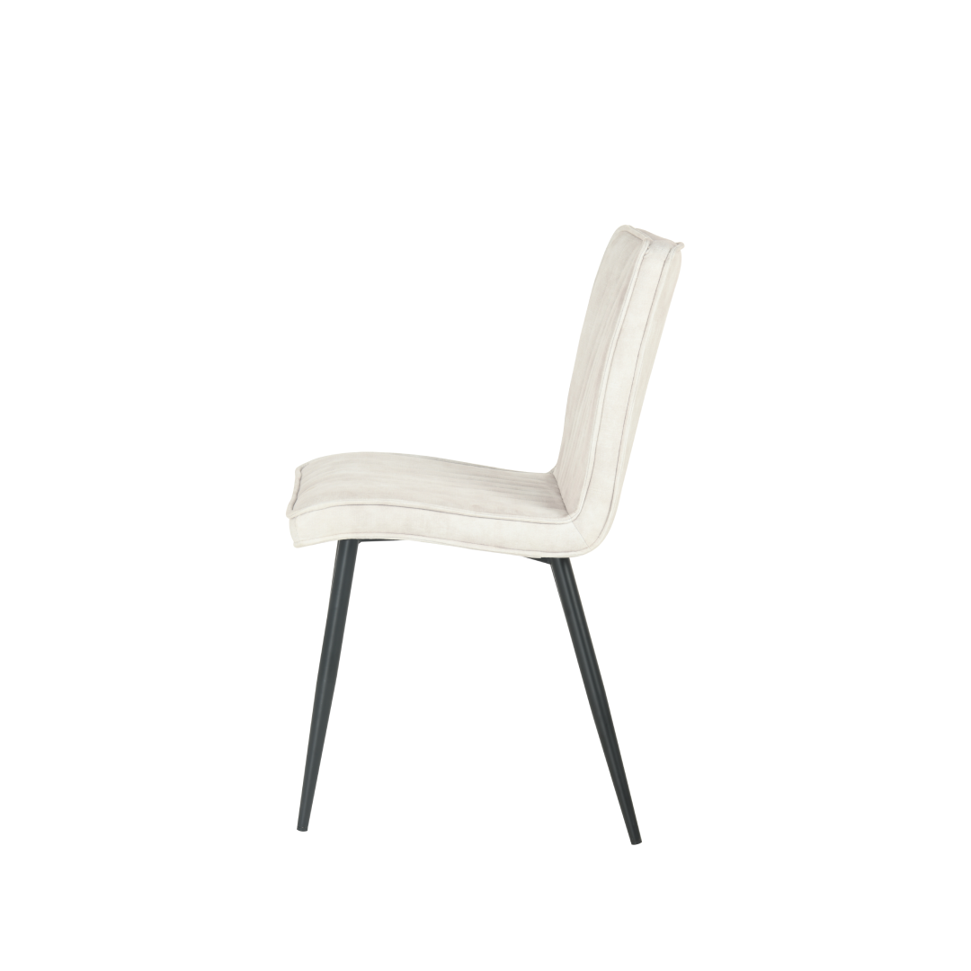 De eetkamerstoel Falster is de perfecte aanvulling op jouw eetkamerinrichting. Met zijn tijdloze lichtgrijze kleur en strakke zwarte metalen onderstel straalt deze stoel moeiteloos stijl en klasse uit. De zitting en rugleuning zijn bekleed met zachte fluwelen stof, wat niet alleen voor een luxueuze uitstraling zorgt, maar ook voor een comfortabele zitervaring.