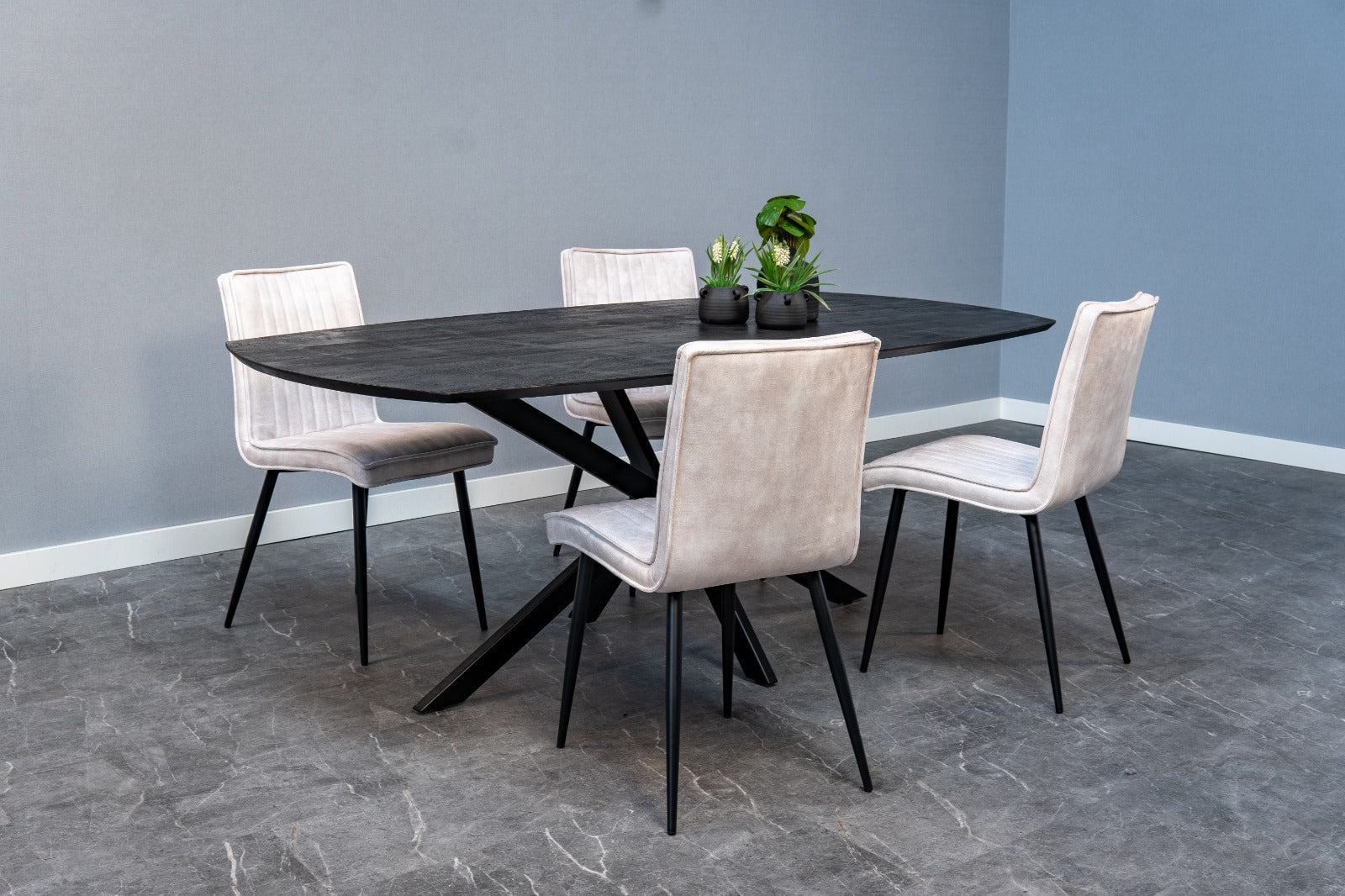 Eetkamerstoel Falster Lichtgrijs met zwart onderstel