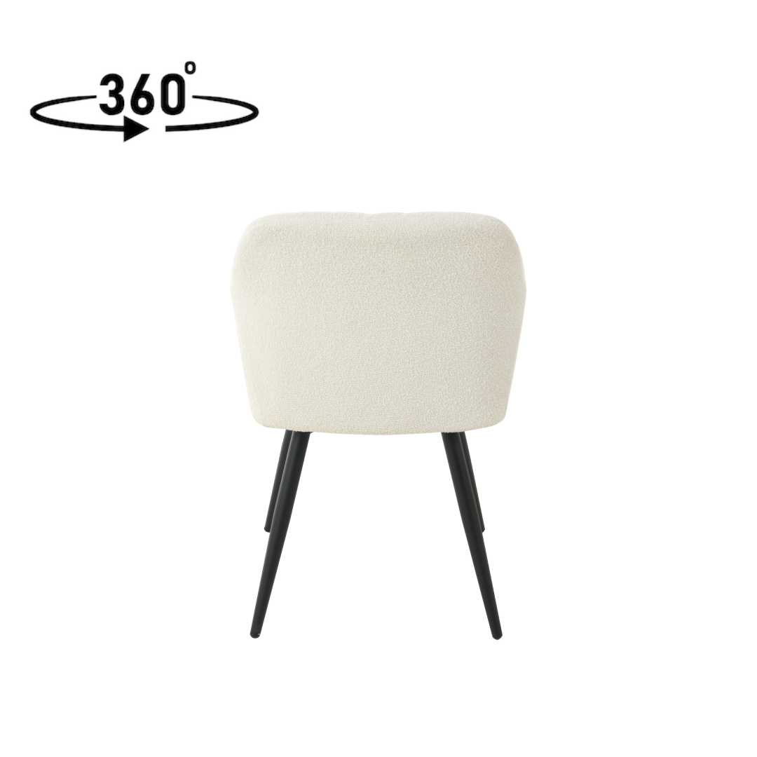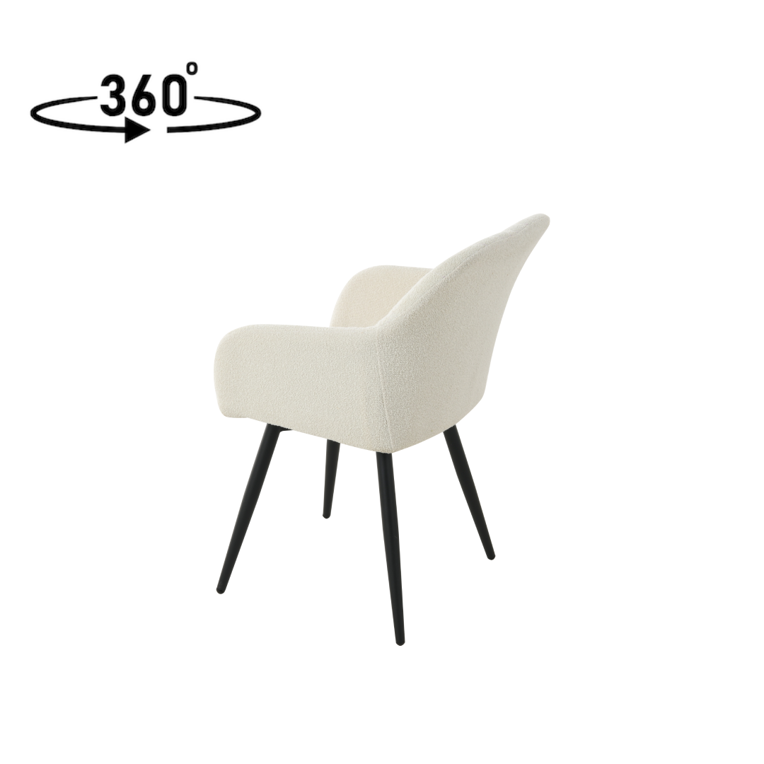 Eetkamerstoel Horsens Wit Bouclé met zwart onderstel