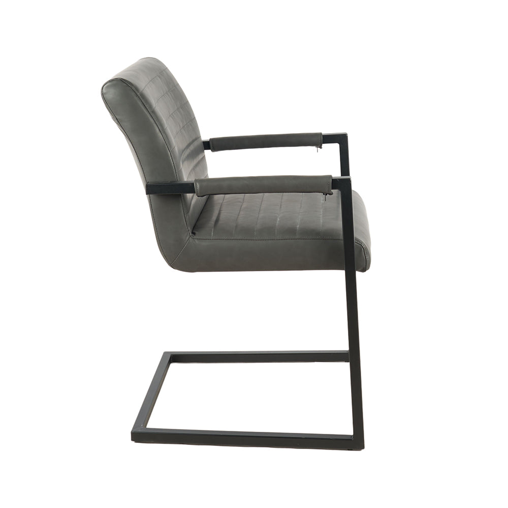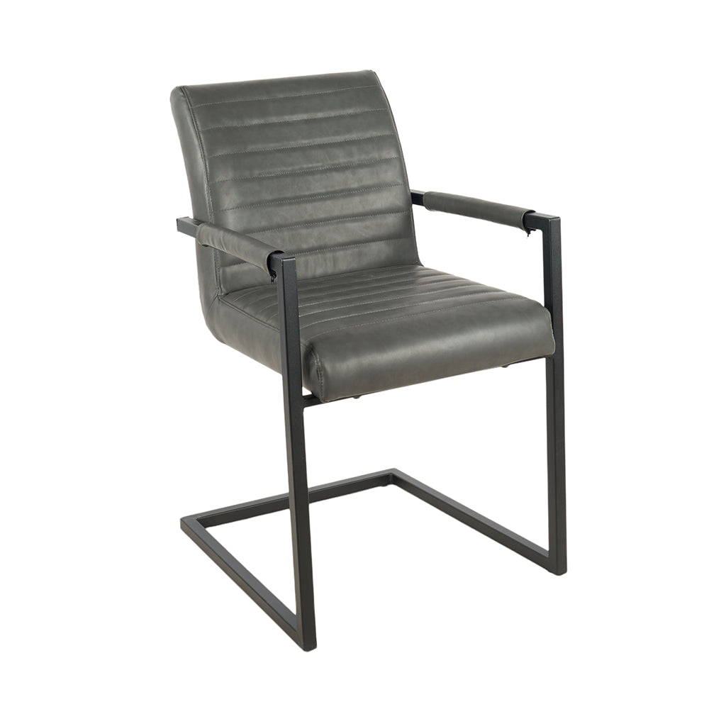 De Eetkamerstoel Kolding Antraciet combineert stijl en comfort, perfect passend in zowel moderne als industriële interieurs. De antracietkleurige kunstlederen bekleding straalt luxe en elegantie uit, terwijl het zwart gepoedercoate metalen onderstel zorgt voor een stevige basis en een stoer karakter.