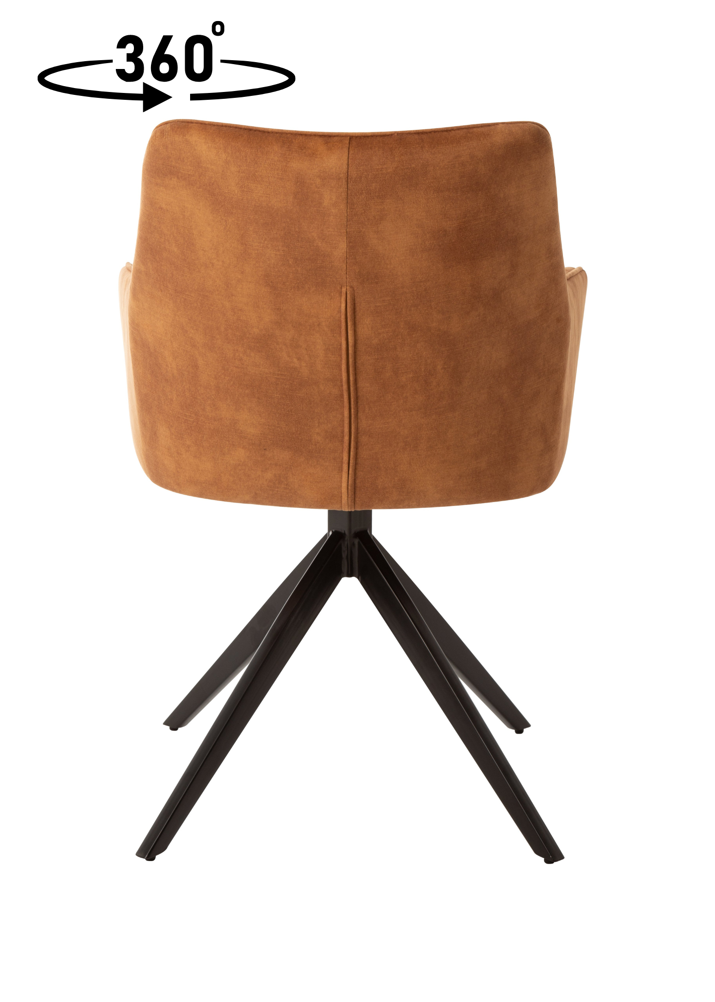 Stoel Odense is de meest trendy en stijlvolle eetkamerstoel uit ons assortiment! De zachte, fluwelen zitting wordt gedragen door de poten met een speels ontwerp. In combinatie met de warme cognac kleur van de zitting zorgt dit voor een totaal andere dimensie in uw eetkamer. Nog een voordeel: de stoel kan 360 graden in de rondte draaien!