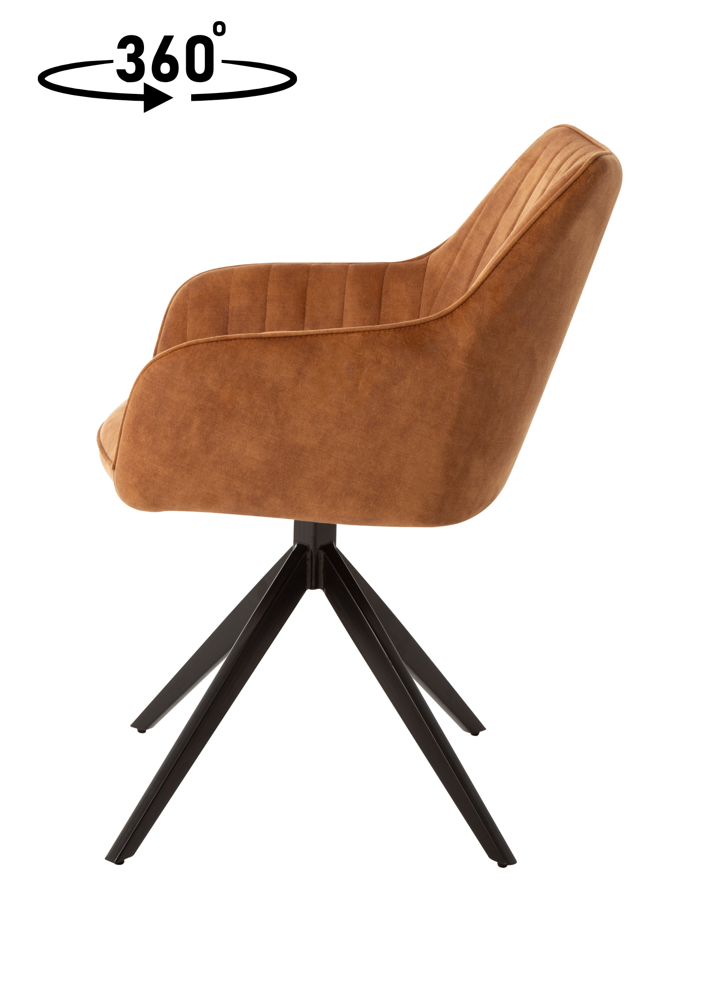 Eetkamerstoel Odense Cognac Fluweel met zwart onderstel