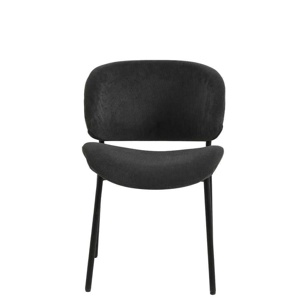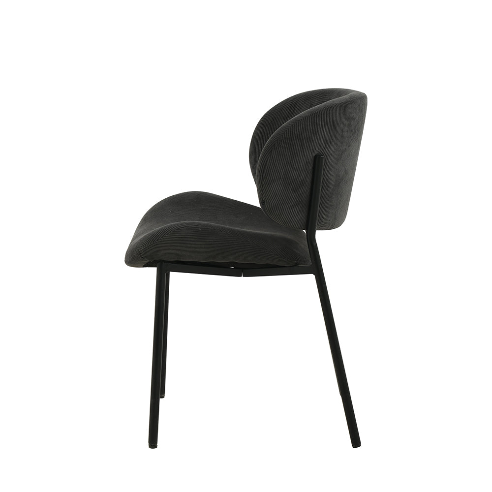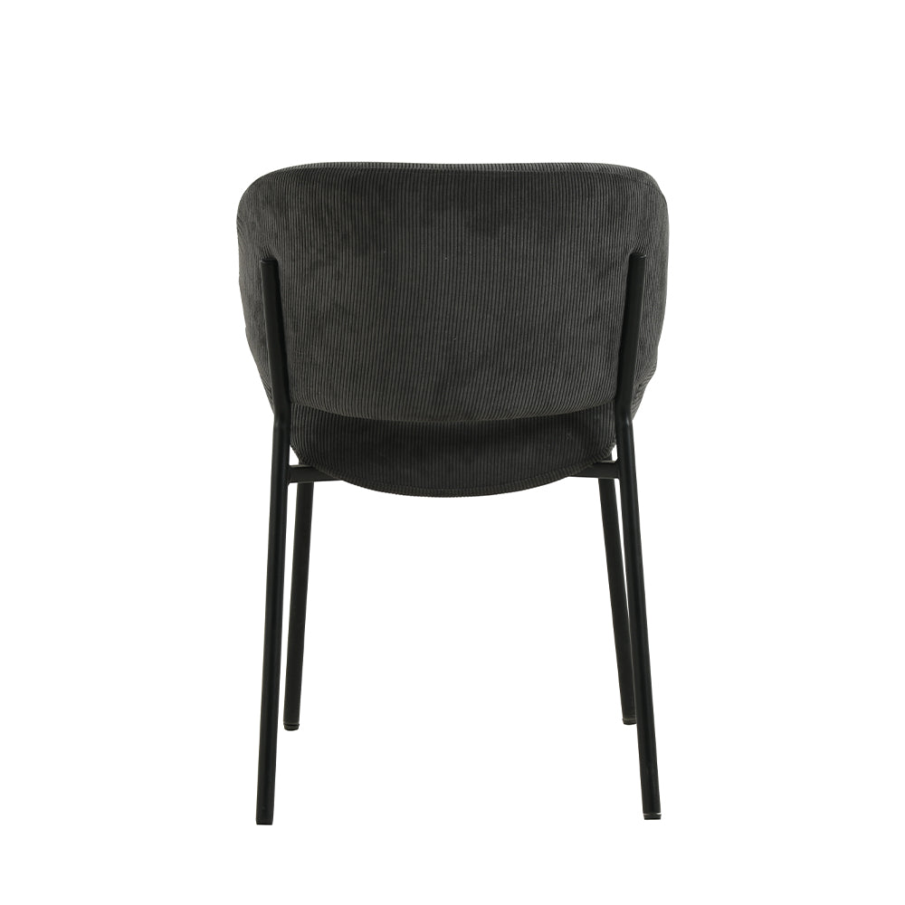 Ervaar de perfecte mix van comfort en stijl met onze Sigtuna eetkamerstoel! Deze stoel heeft een chique donkergrijze ribstof en een strak zwart metalen frame, waardoor hij een tijdloos charmante uitstraling heeft die elke eetruimte een moderne touch geeft.