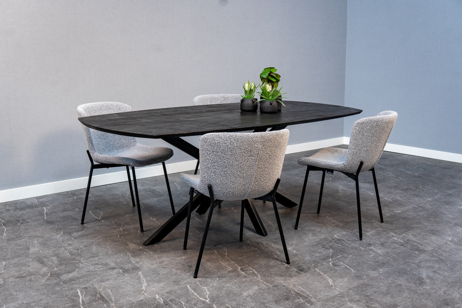 Eetkamerstoel Skagen Lichtgrijs Bouclé met zwart onderstel