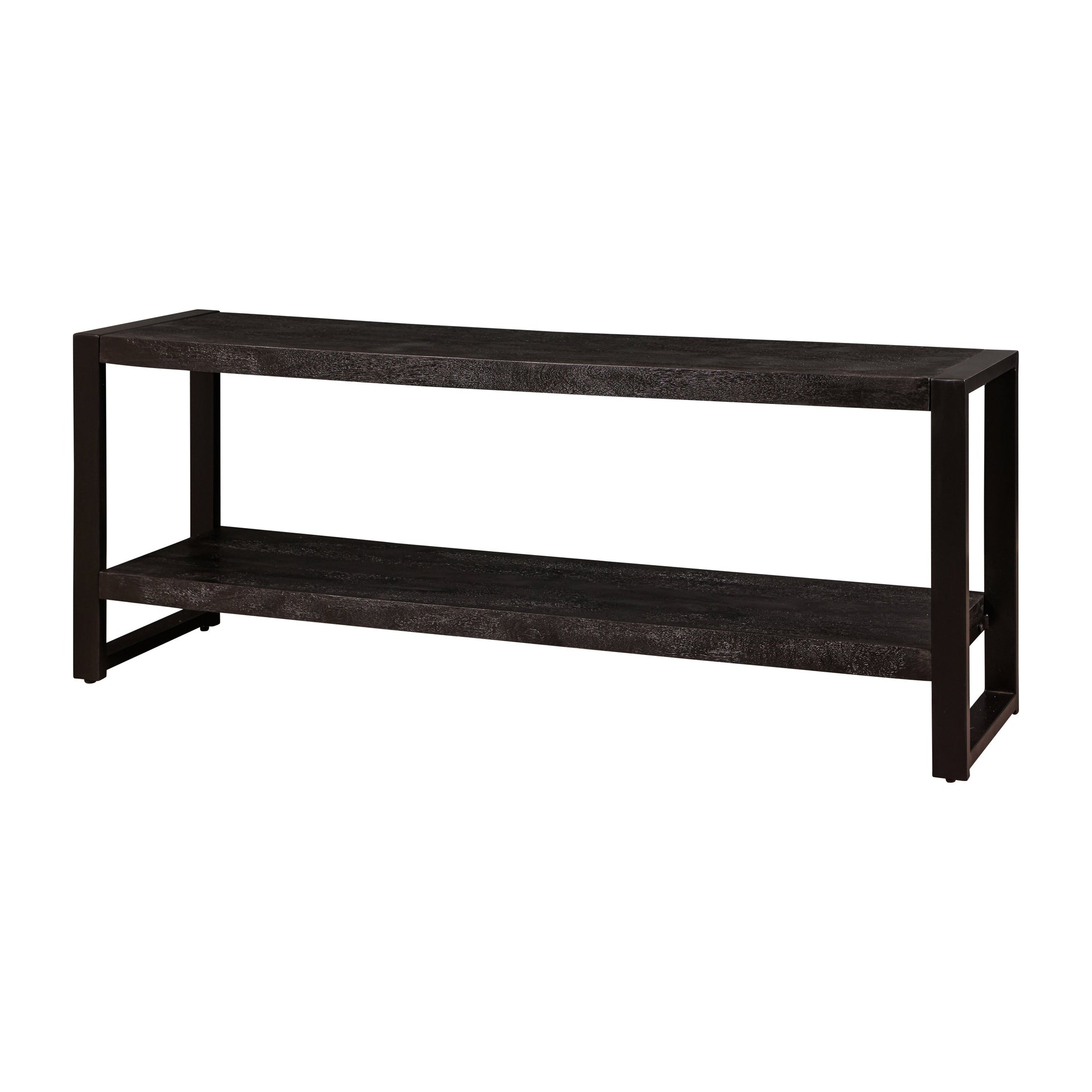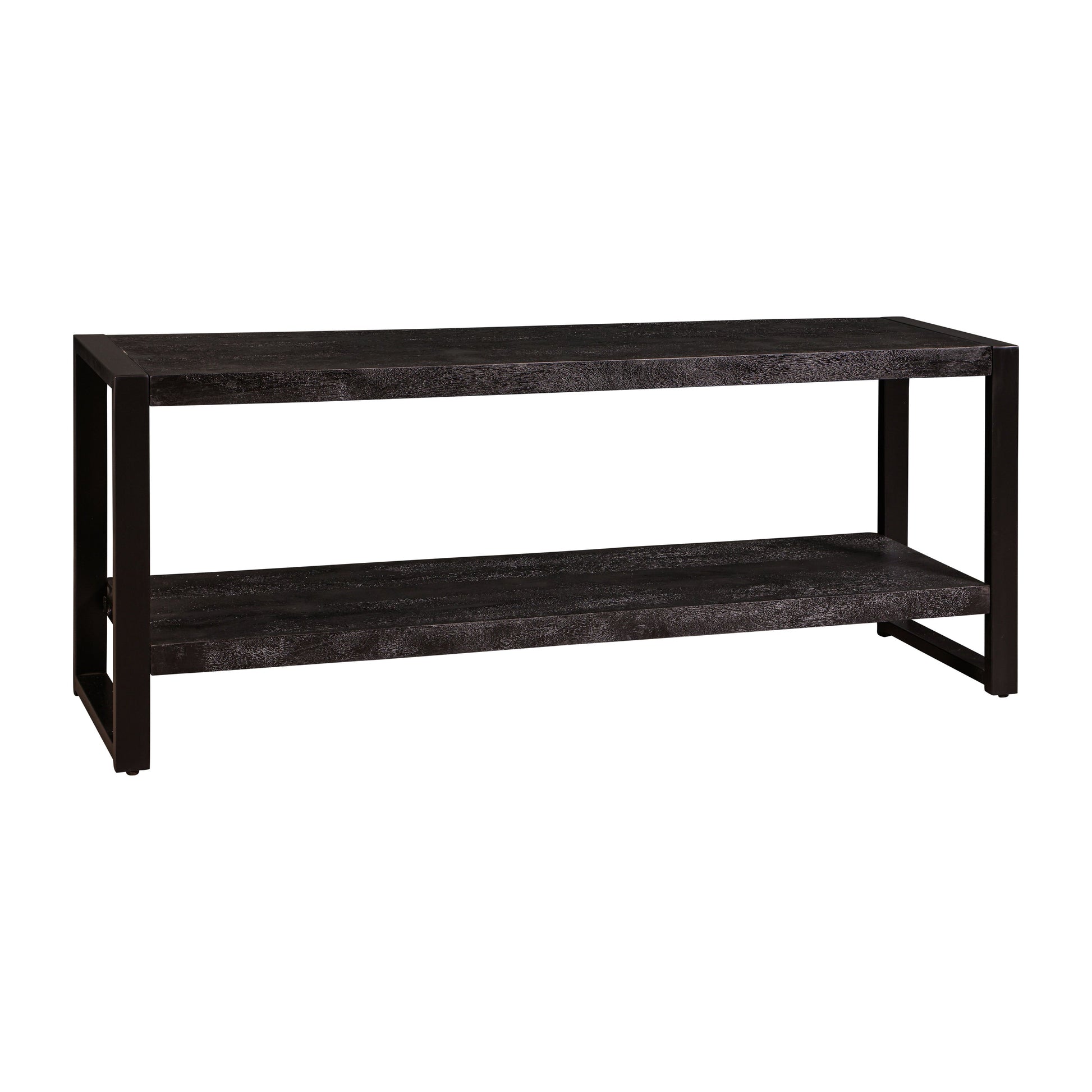 Bent u fan van zwart hout in combinatie met stoer staal? Dan bent u ook zeker fan van TV meubel Britt. Dit meubel is gemaakt van mangohout en heeft aan beiden zijden een stalen frame om het geheel helemaal af te maken. De bovenste plank biedt voldoende ruimte voor uw tv en de onderste plank kunt u gebruiken voor onder andere apparatuur en andere spullen.
