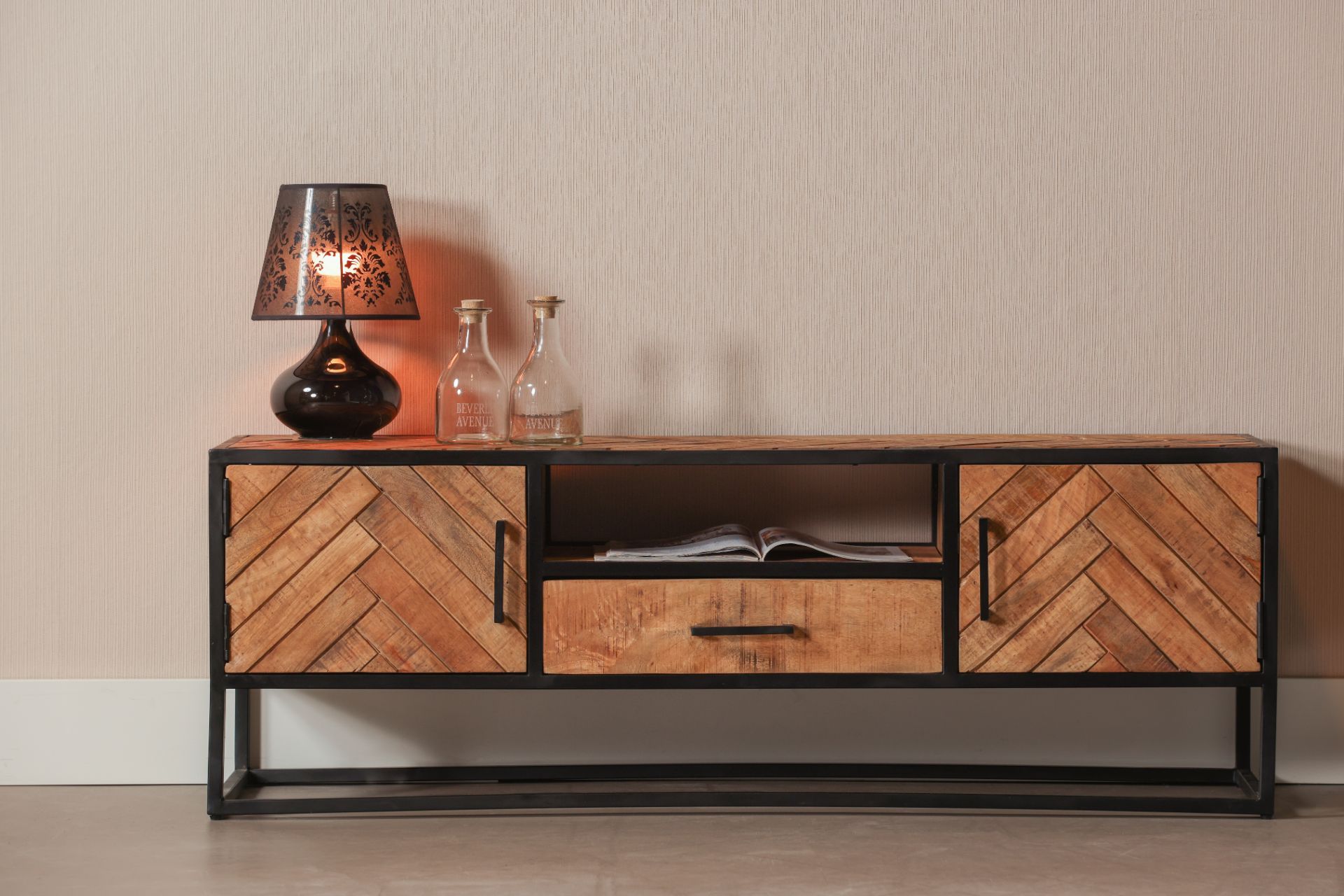 Heeft u geen ruimte voor een groot TV Meubel of wilt u gewoon een knus, stijlvol meubel in huis? Het smalle TV Meubel Kjeld voldoet perfect aan deze eisen. Het open vak van het meubel is uitermate geschikt voor een tv-ontvanger, terwijl het meubel met de lade en de twee kastjes ook nog voldoende opbergruimte bevat.