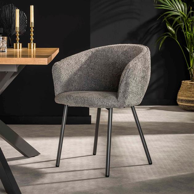 - Stijlvol en elegant design. - Comfortabele zitting voor langdurig zitgemak. - Set van 2 armstoelen, ideaal voor een complete eethoek. - Gemaakt van hoogwaardige materialen voor duurzaamheid en kwaliteit. - Boucle grijs bekleding geeft een moderne uitstraling.